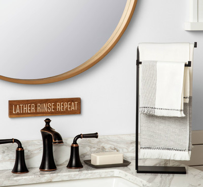 View Hearth And Hand Bathroom Pics. White and pink hand towel adds a bright pop to your bath space. Use in kitchens, bathrooms, laundries, at the front door or anywhere liquid may be spilled.
